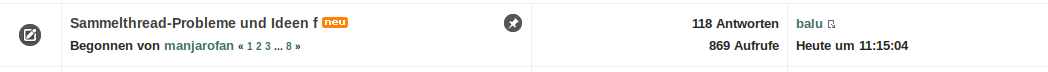 Somit ist das Forum manchmal für mich überhaupt nicht brauchbar, da man ein Thema verfolgt und auf einmal weiß man nicht mehr wovon die Leute reden.