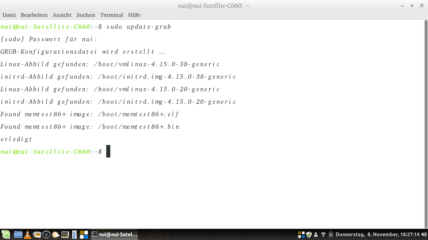 na, jetzt hat's geklappt - danke für die Info an Daemon[rudi@adagio-pc ~]$ sudo grep -i  ^menuentry /boot/grub/grub.cfg
