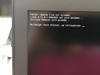 Das Betriebssystem, dessen Installation mir gelungen ist, startet allerdings auch nur mit Fehlermeldungen, wie man den angehängten Bildern entnehmen möge.