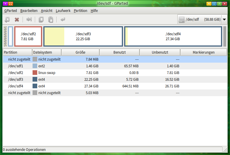 Verstörend ist auch, dass der Stick bei gparted anders gelistet ist (sdf) als jetzt mit dem Befehl:.