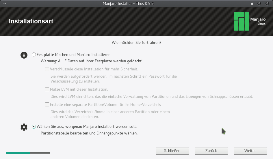 Ist dieses nicht möglich ,so starte ein anderes Manjaro .