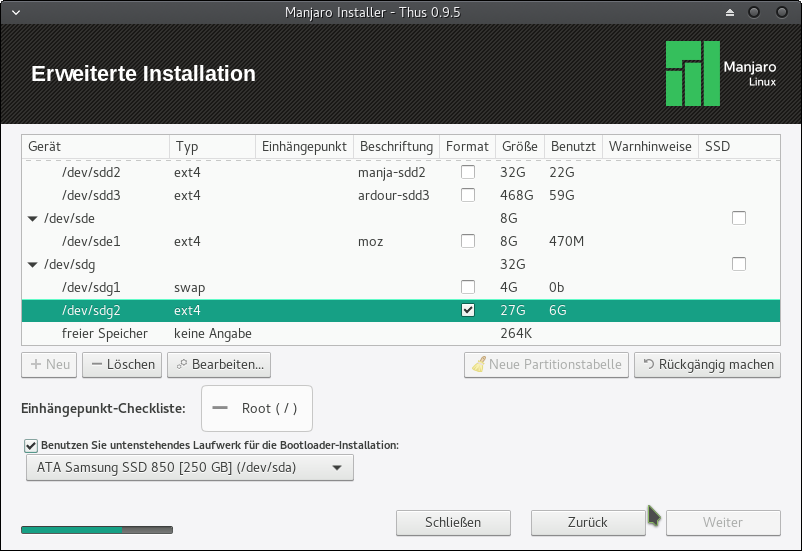 Bevor es ans installieren geht noch mal das Bootloader Devices festlegen