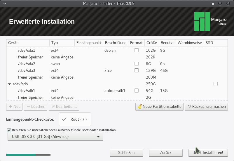 Da eine automatische Installation nicht möglich war, habe ich den Stick manuell partitioniert.