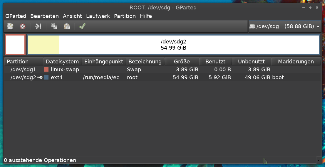 In der Vergangenheit wurde beim tournusmäßigen Update auch regelmäßig gparted aktualisiert. Daher vermute ich, dass hier eine Aufgabenverschiebung durchgeführt wurde, oder ich hätte jetzt zwei defekte USB3.0 Dongle.